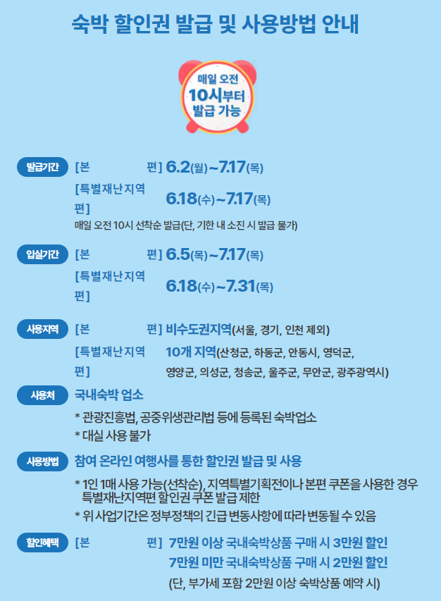 이번 2025년 행사에서는 총 40만 장의 숙박 할인권이 배포되며, 숙박비 2만 원에서 최대 5만 원까지 할인 혜택을 받을 수 있도록 구성되어 있습니다.